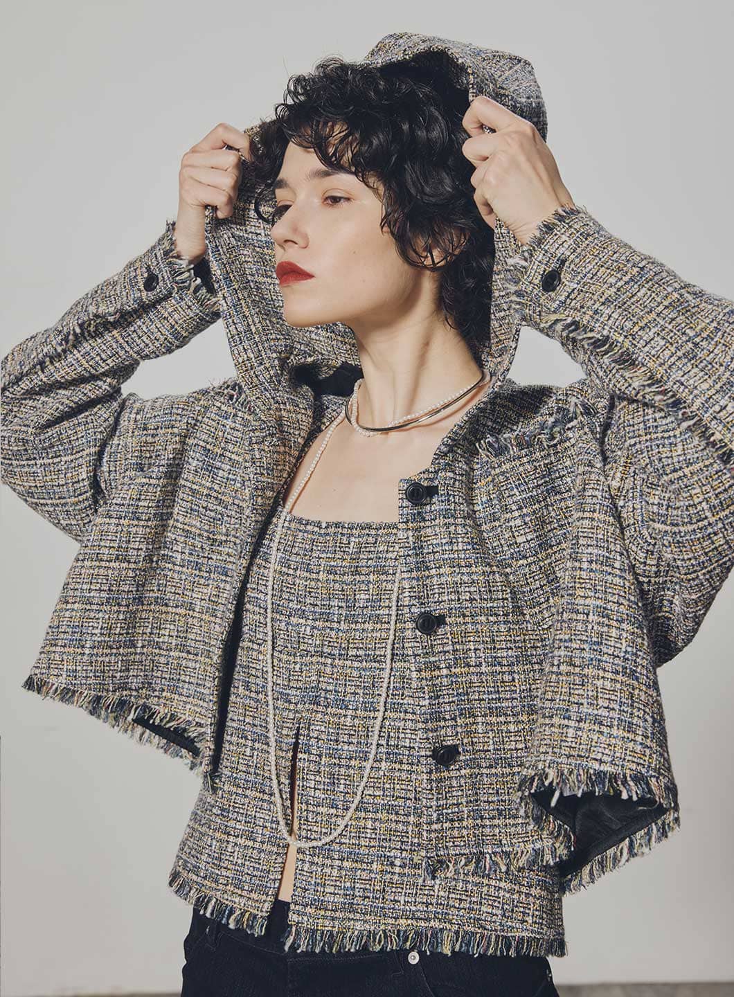 COEL定番のツイードアイテムをカジュアルにも着やすいショート丈ブルゾンで展開。