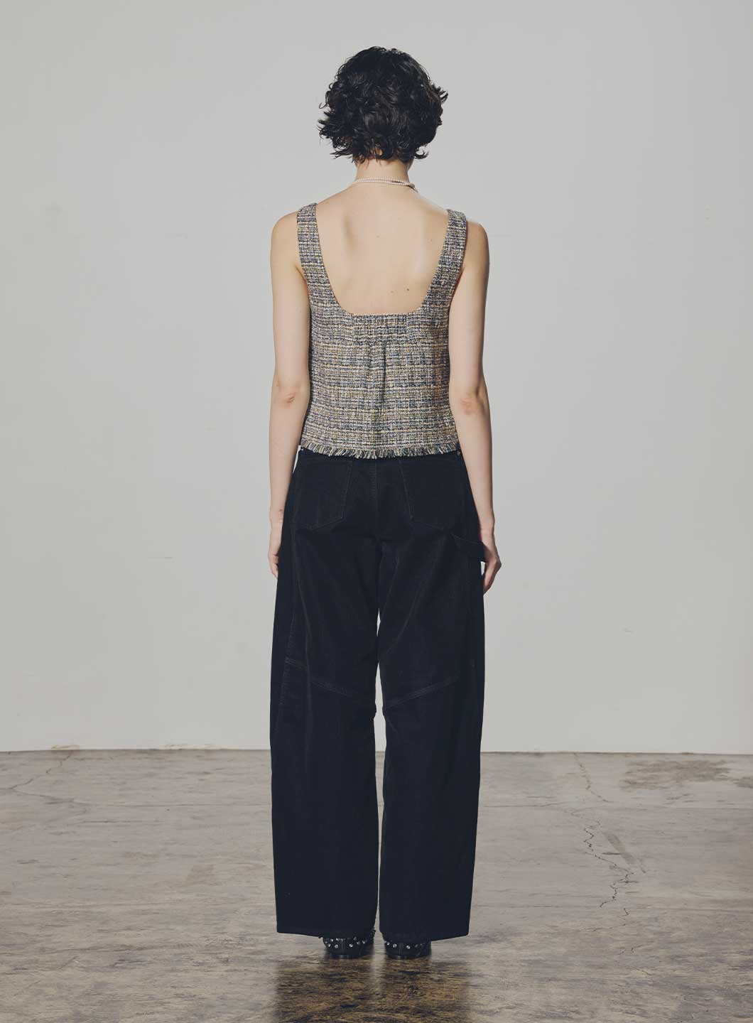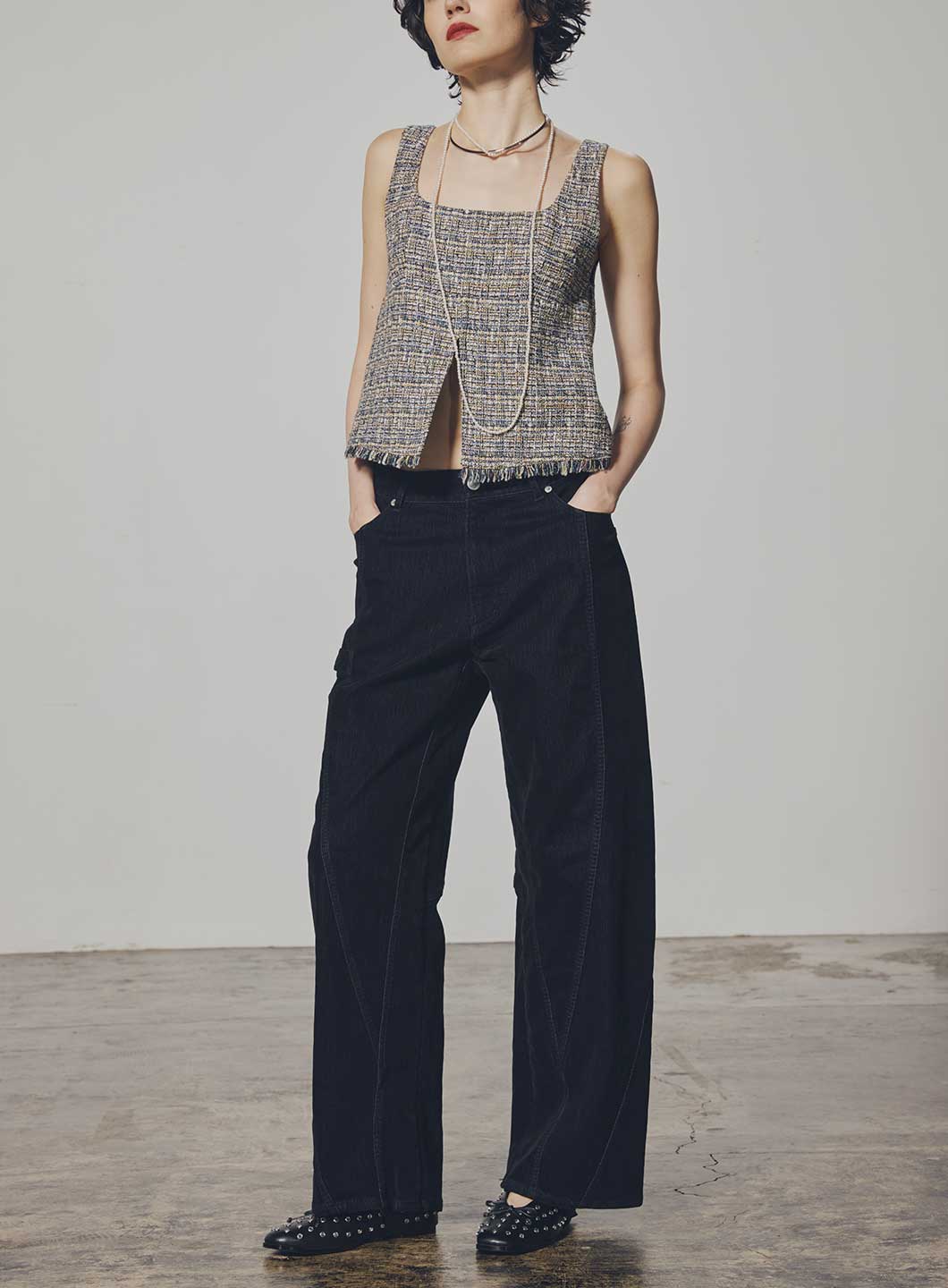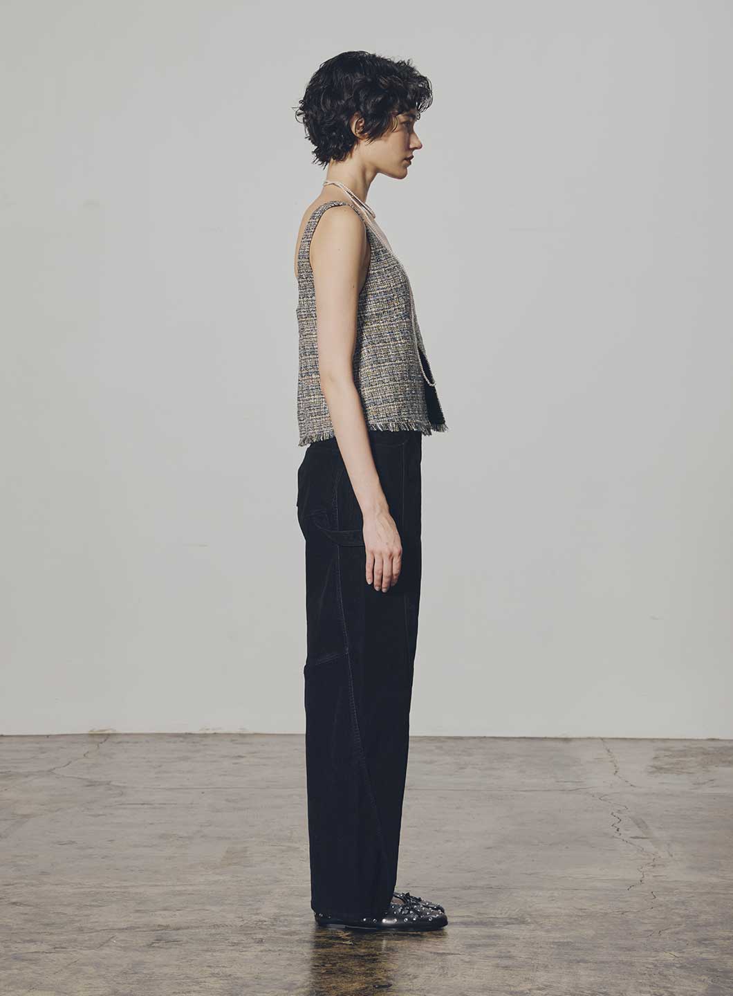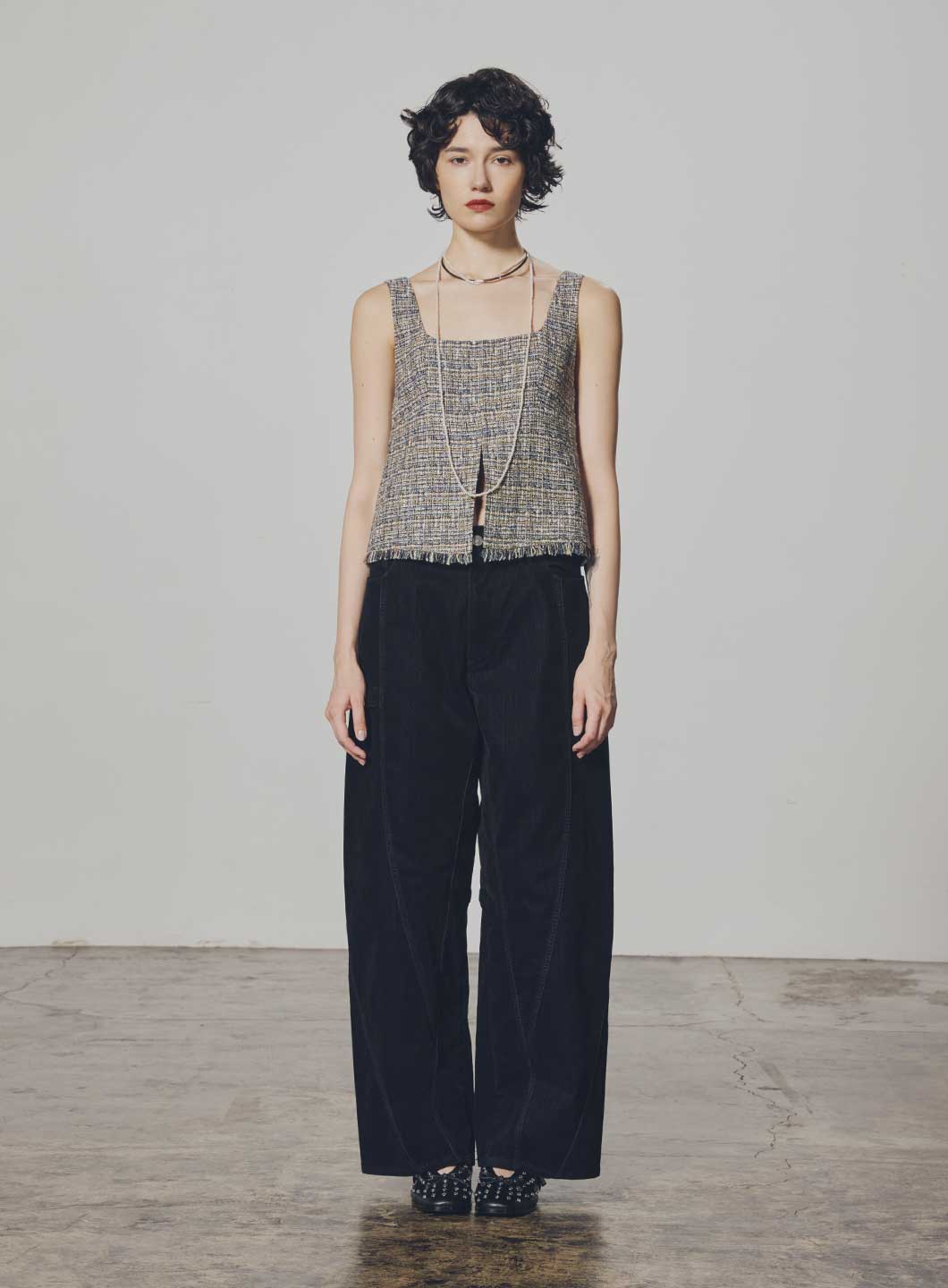 注目のスクエアネックでオーバーサイズのシャツやハイゲージのニットなど色々な組み合わせに使いやすく、1枚でも着れるサイズ感にしています。