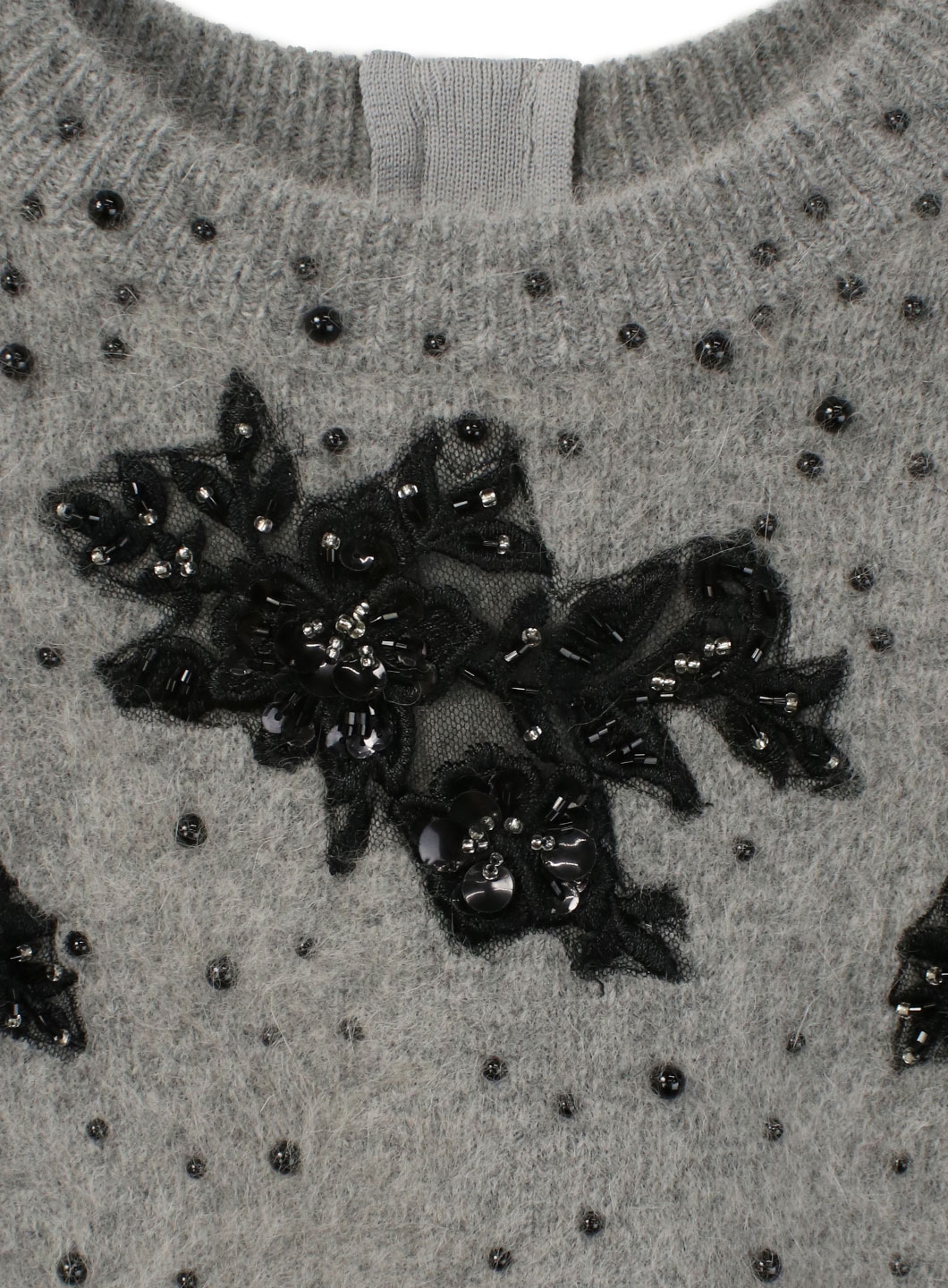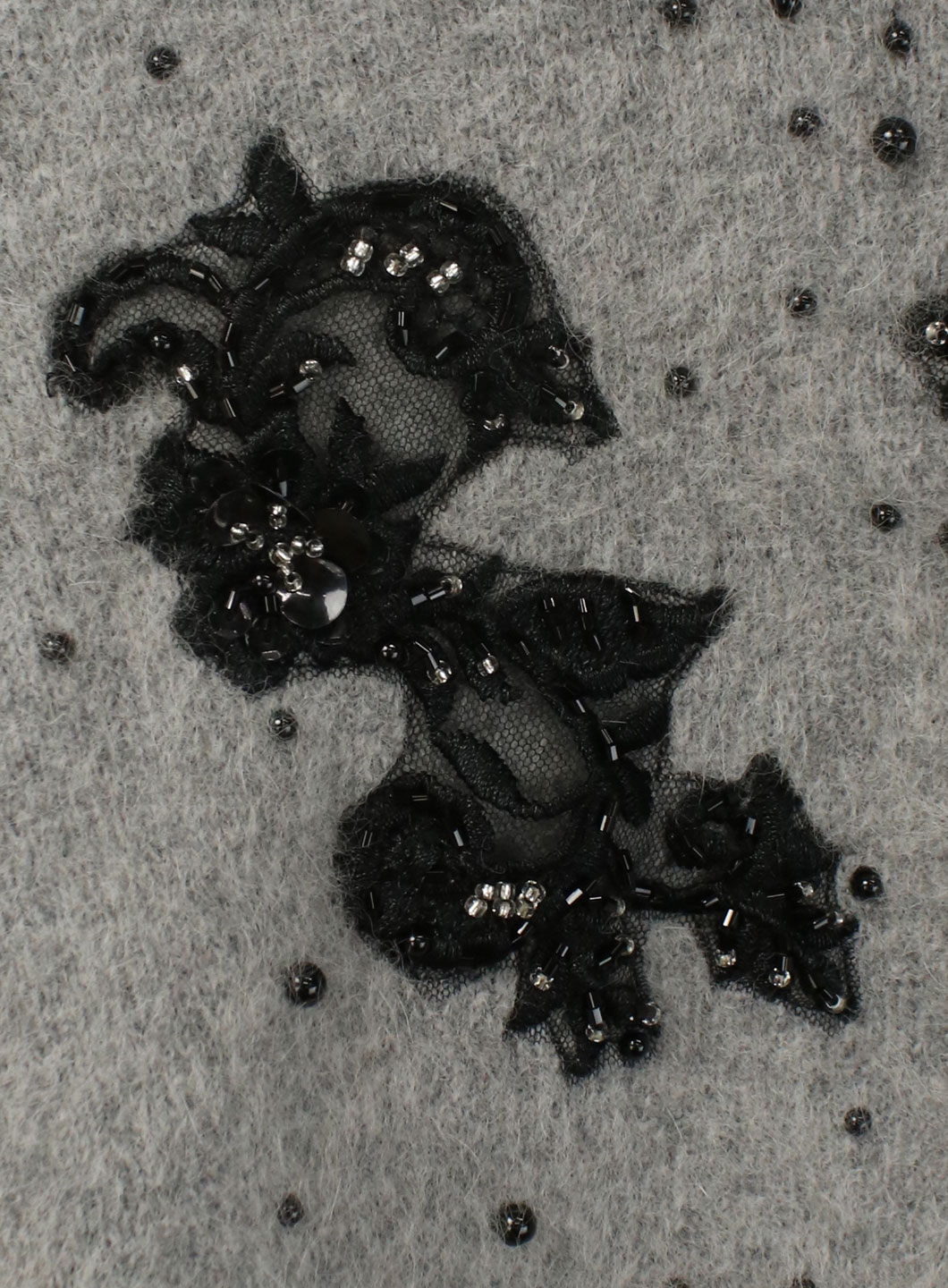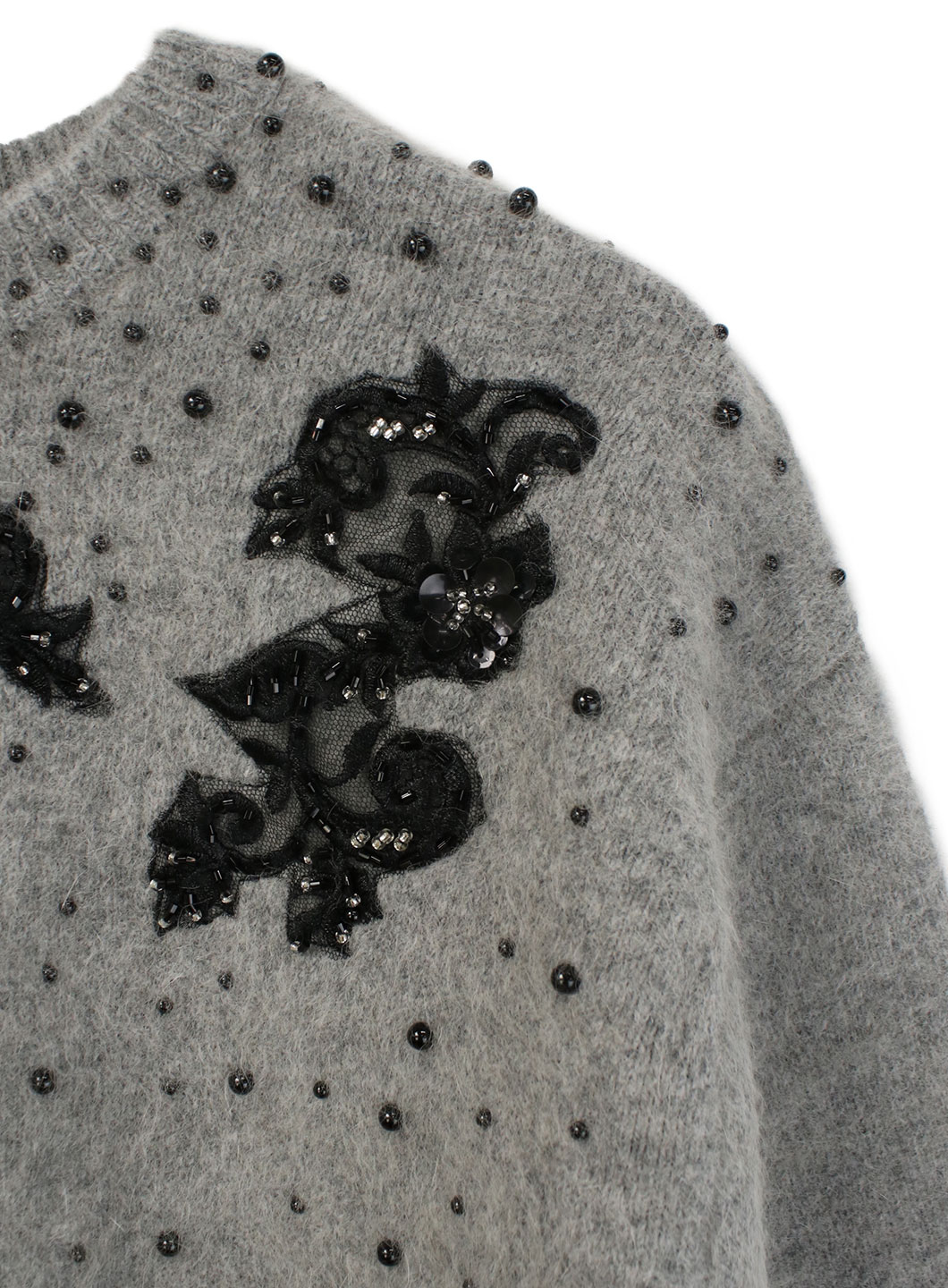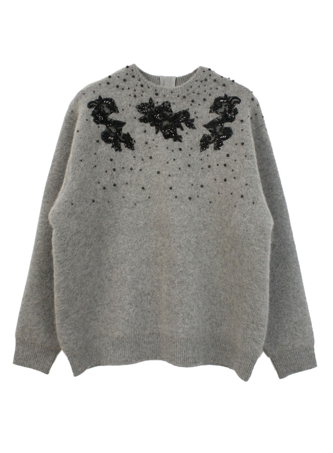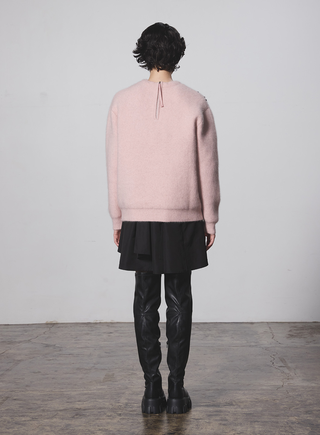 パーティーシーズンにぴったりのニットです。裏側には異なる糸を組み合わせたジャガード編みを採用し、見えない部分にもこだわりました。