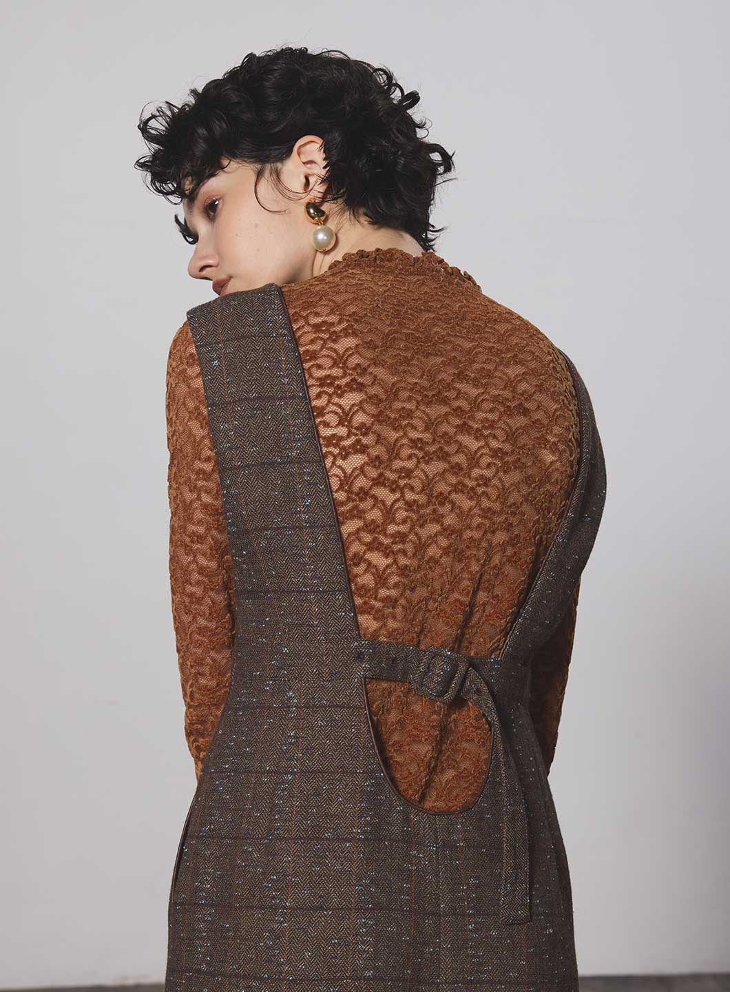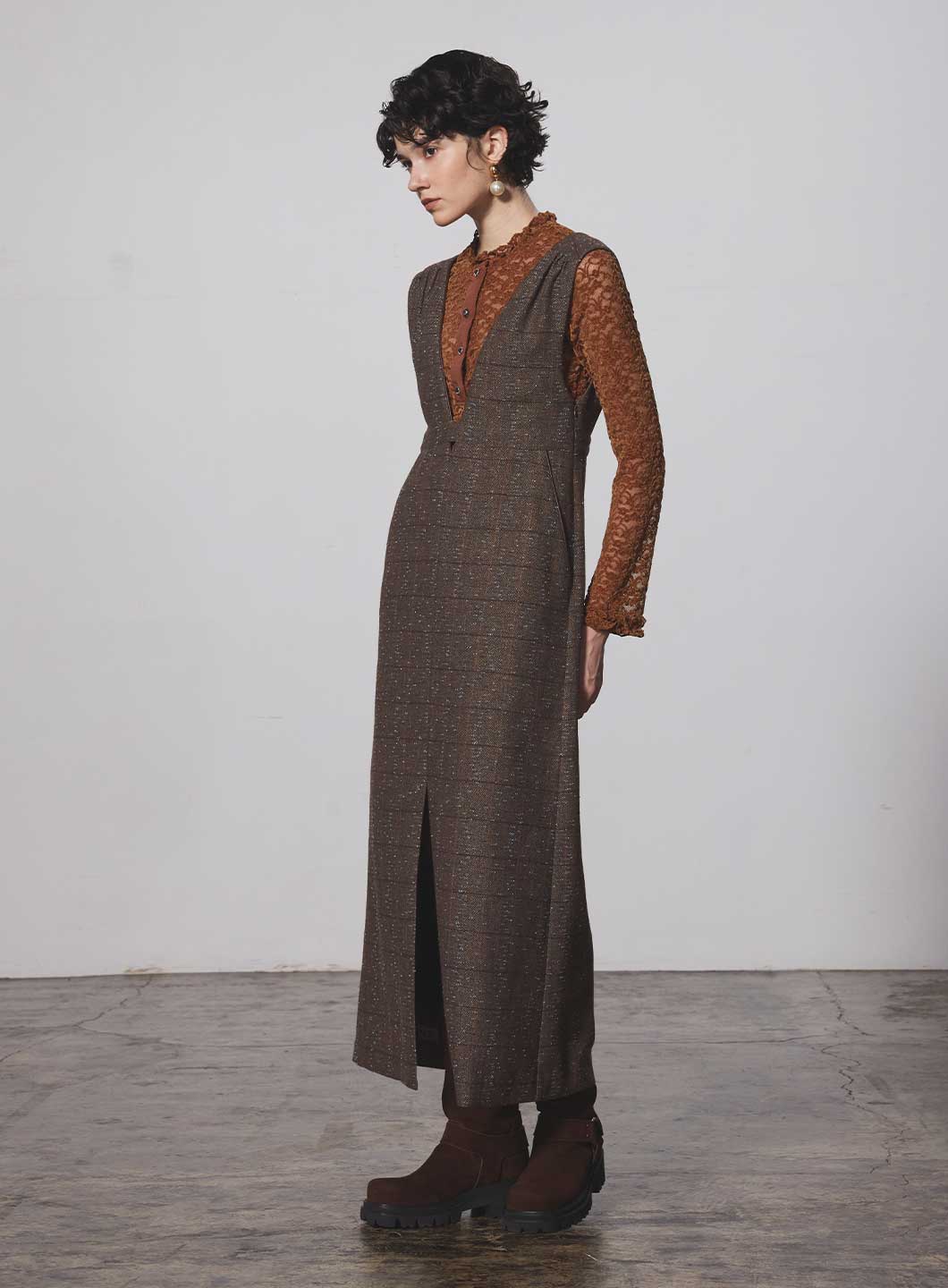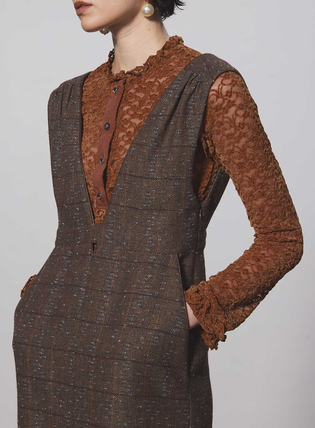 同素材で製作した<185406031 ベロアレーススカート>とのセットアップがオススメ。