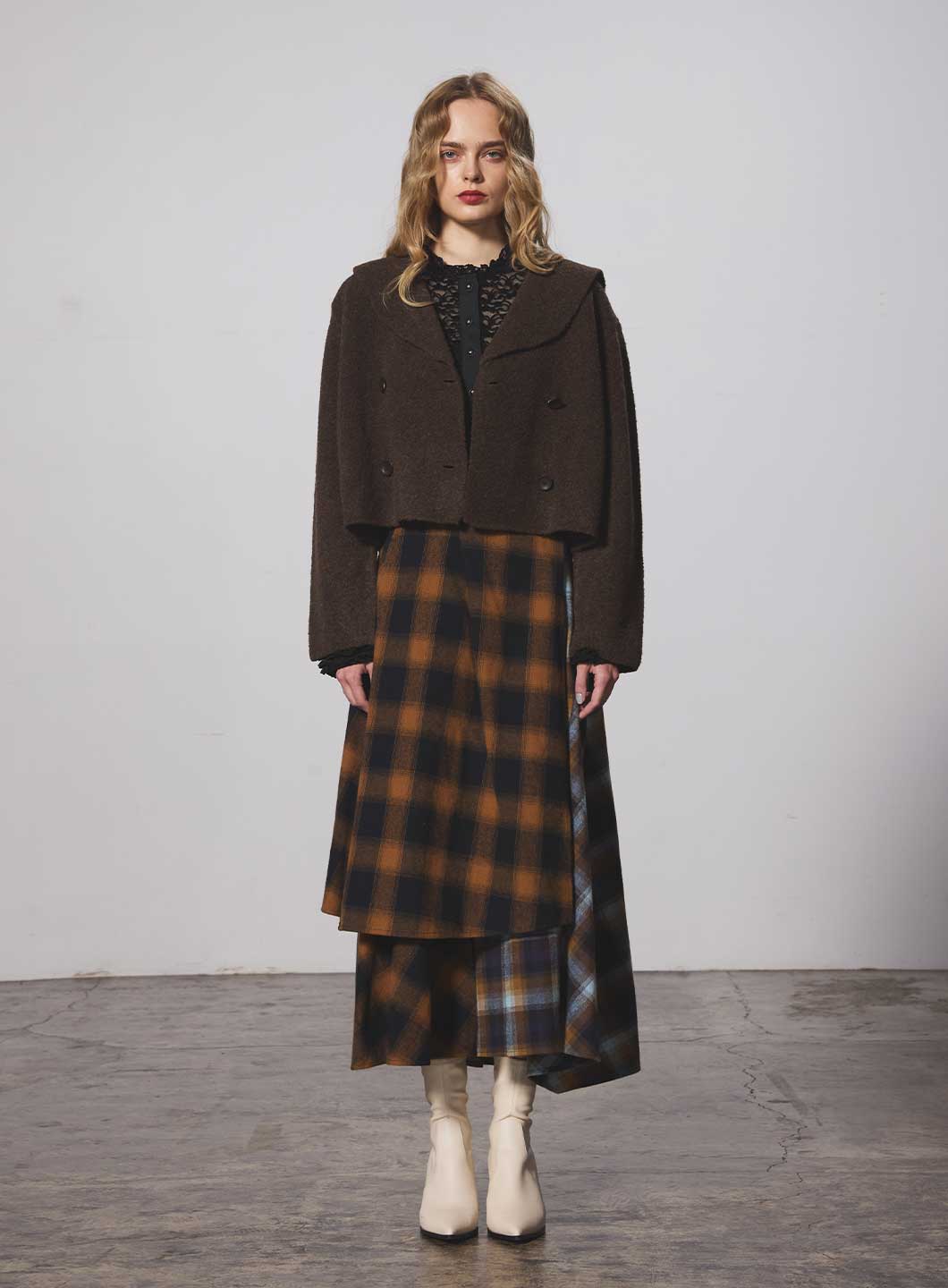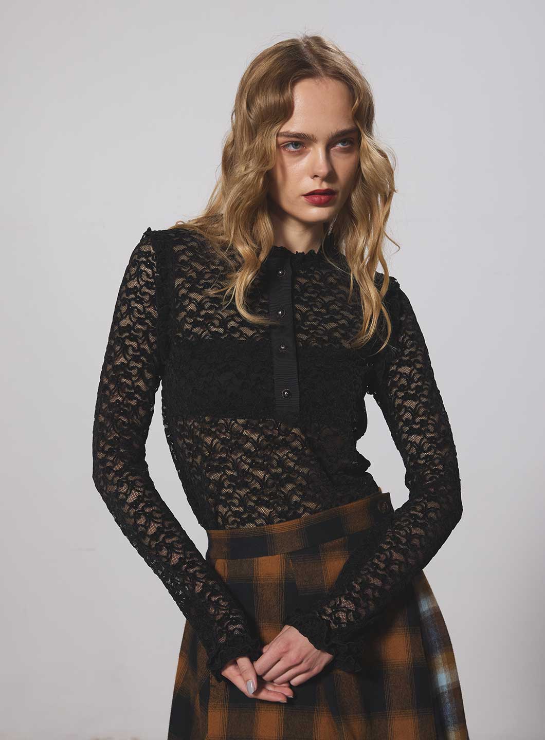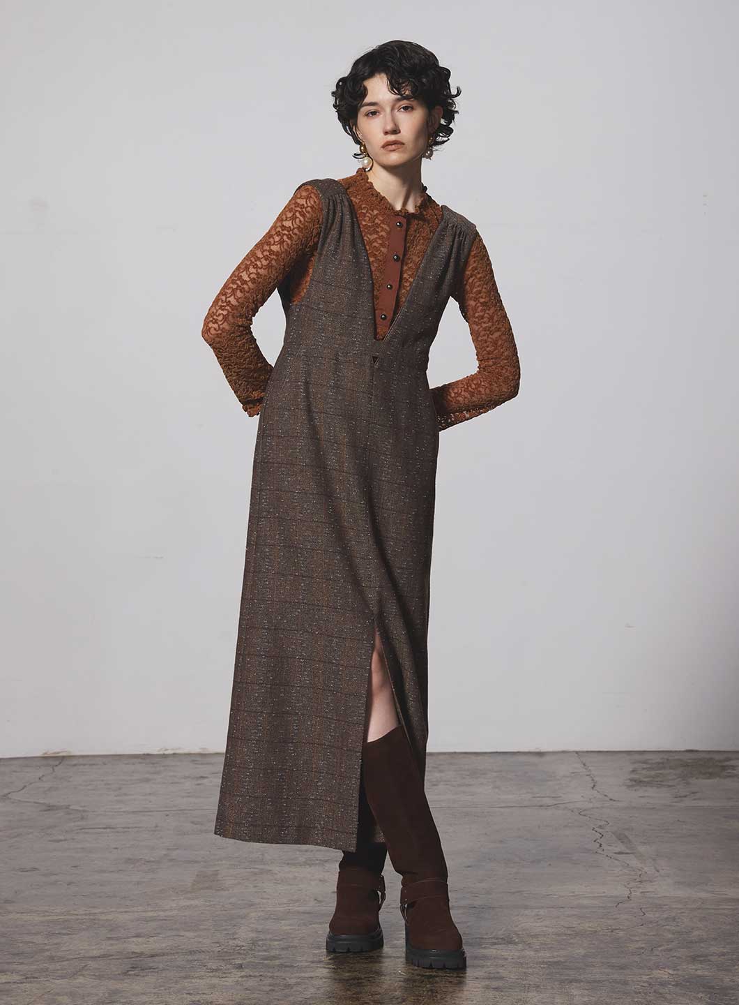 同素材で製作した<185406031 ベロアレーススカート>とのセットアップがオススメ。
