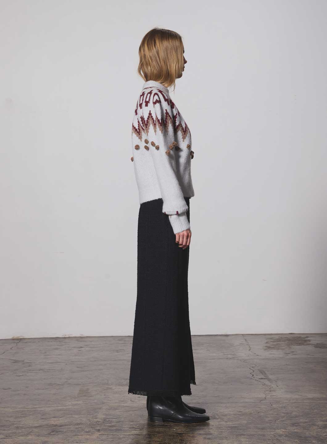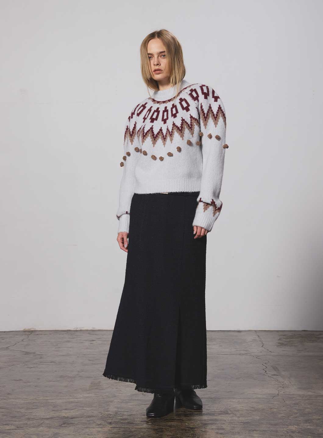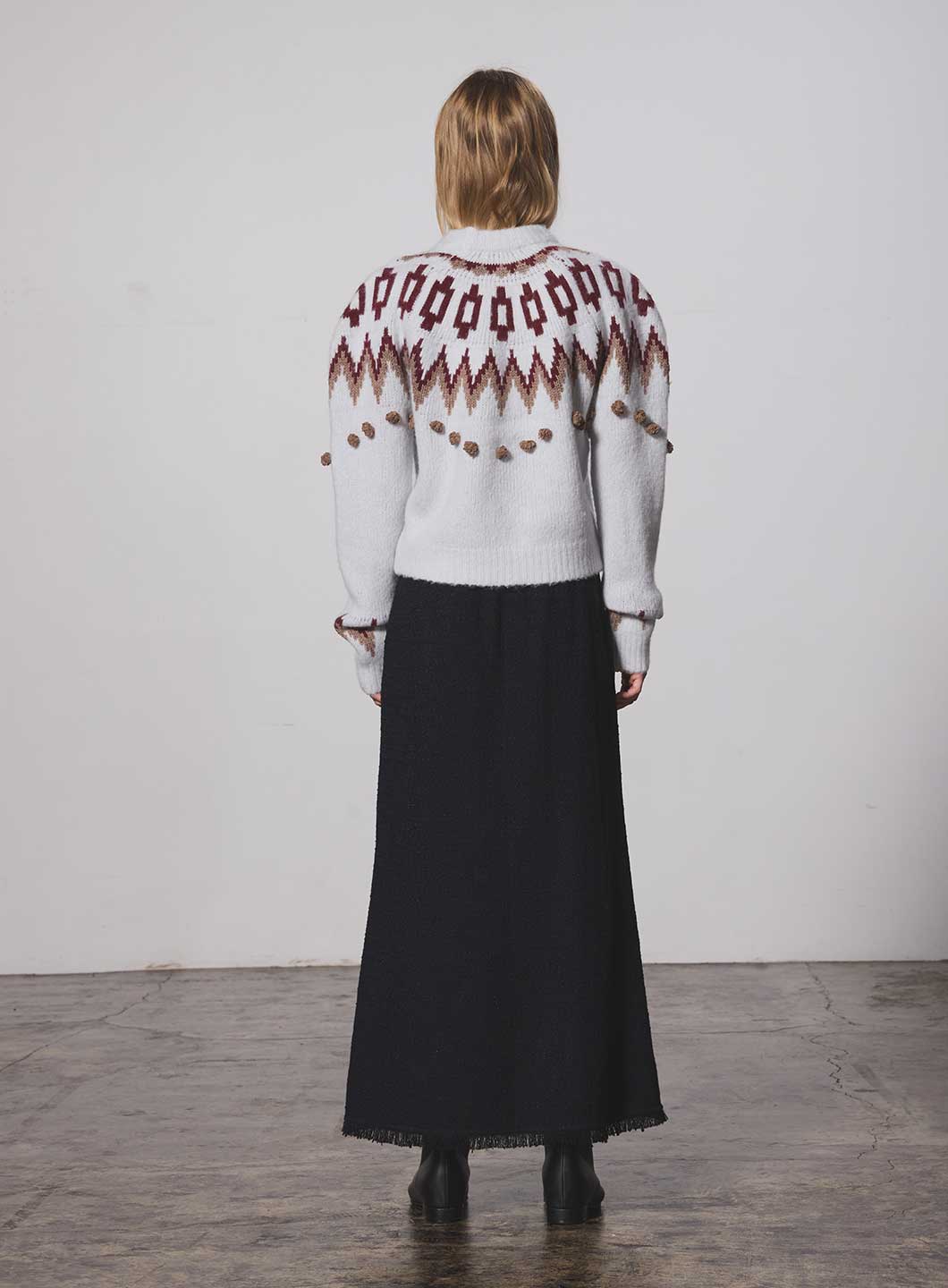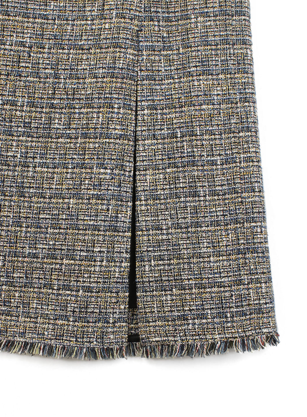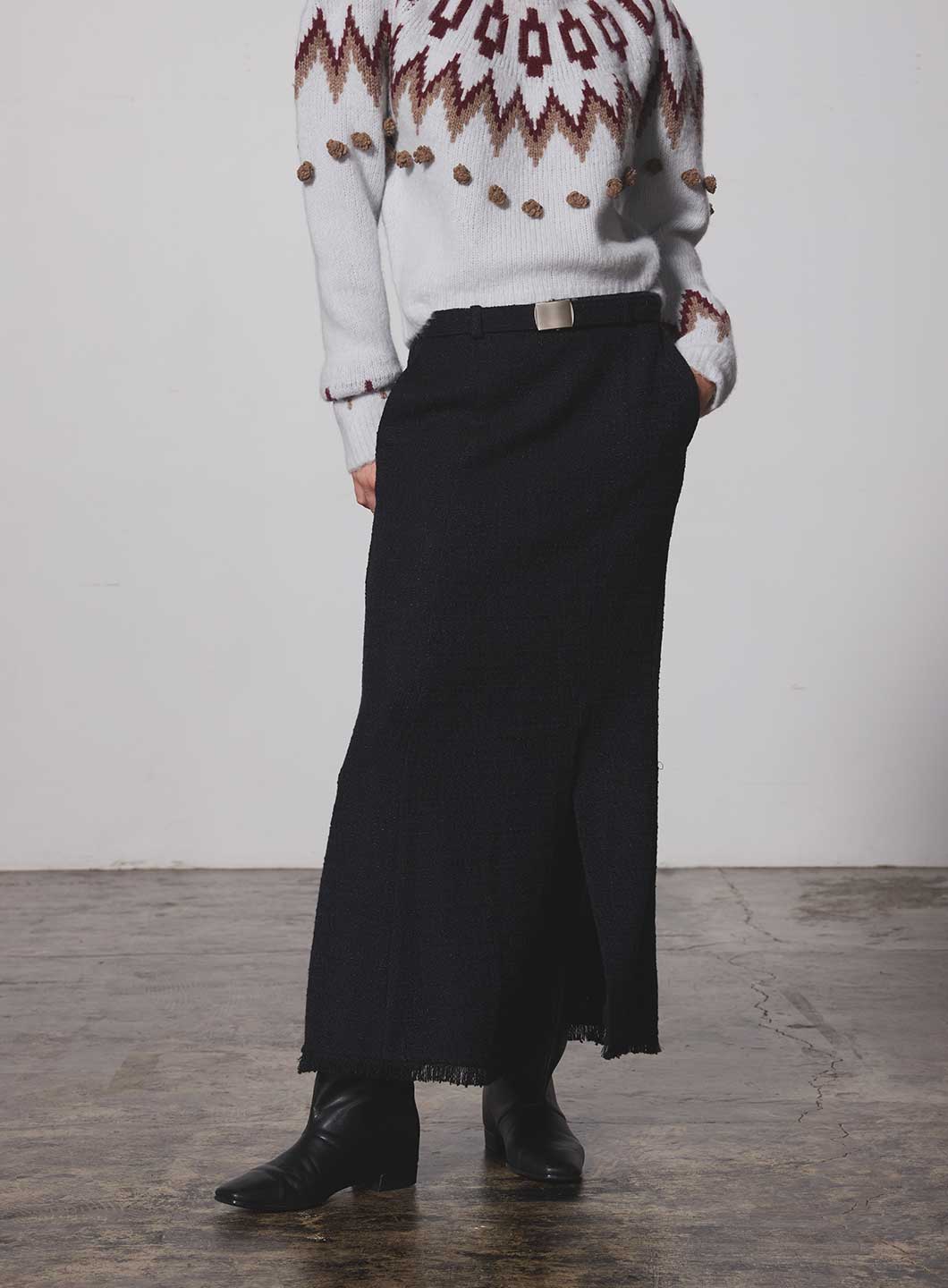 同素材で製作した<185402026 ツイードフードブルゾン>とのセットアップがオススメ。