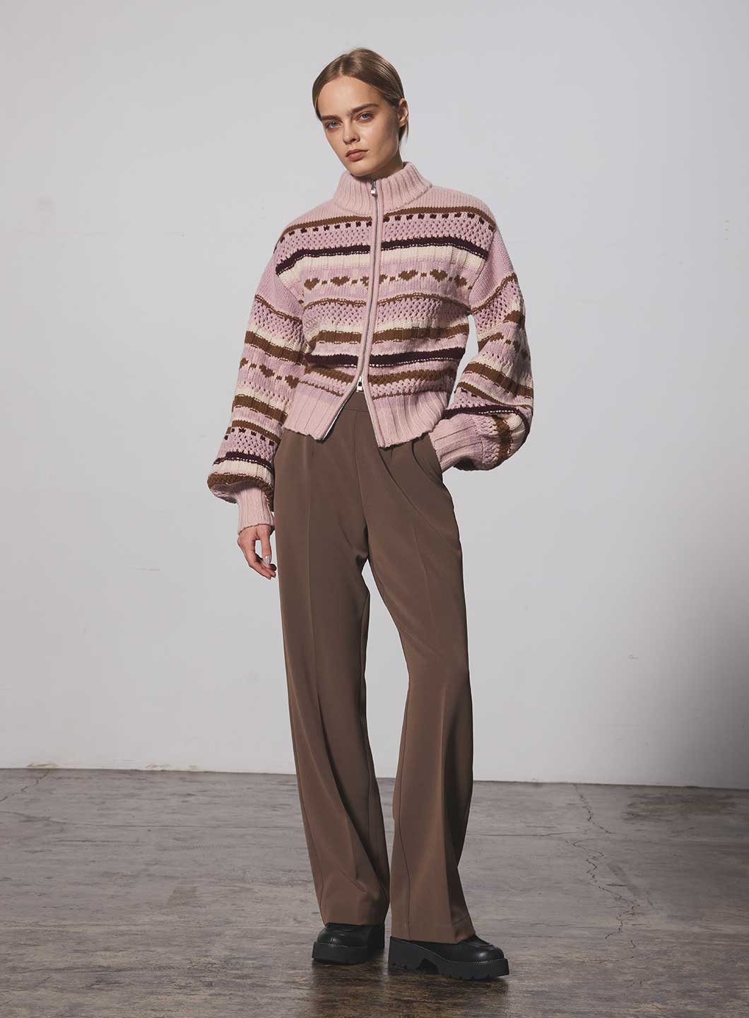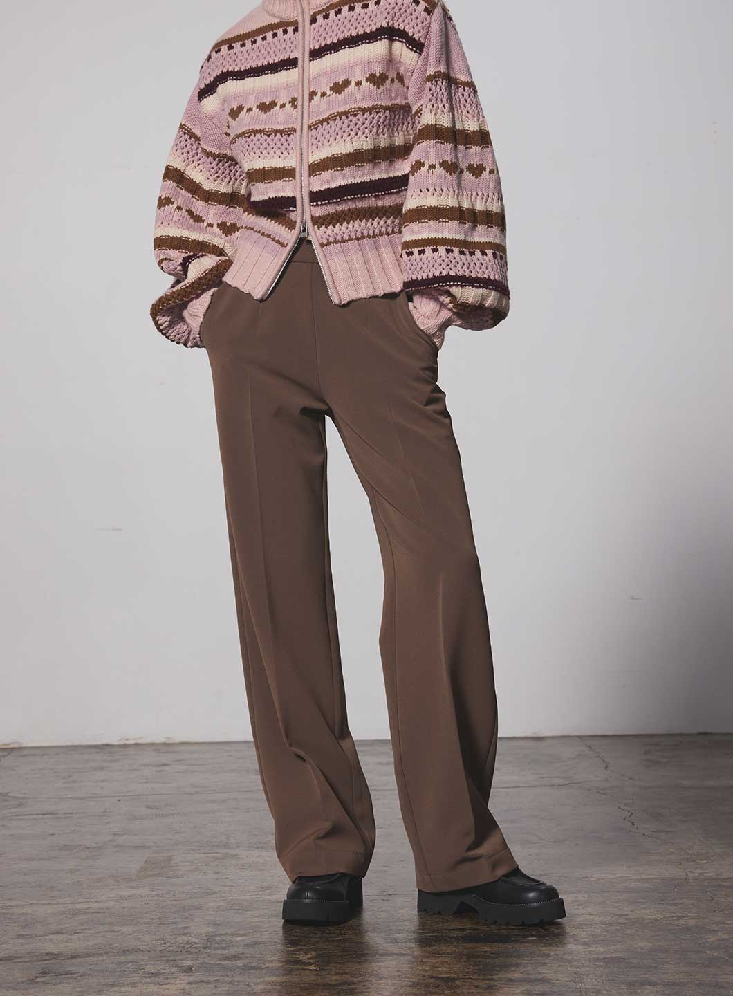 セットで合わせるはもちろん、スラックスのみでニット合わせや、