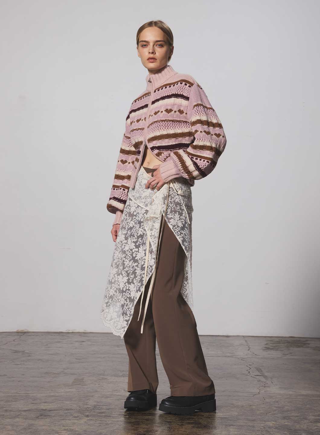 パンツは、寒い冬に履きたくなる裏起毛素材を使用しており、セミワイドストレートで足が綺麗に見えるシルエットに拘りました。