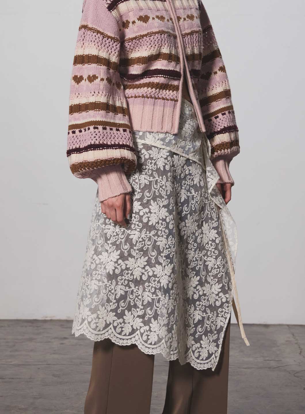 レースはヴィンテージのハンド刺繍のようなクラフト感のあるポリエステルレース。