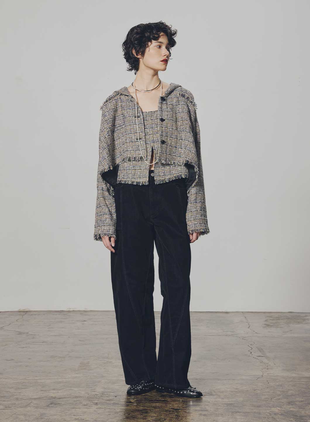 【10/16発売】フロッキー加工バレルレッグパンツ